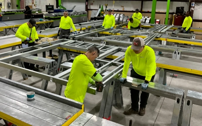 Panels are assembled in a controlled environment and inspected for accuracy, alignment, and structural integrity.